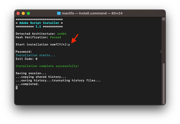 Bước 1: Chạy file Install.command > Nhấn y rồi Enter> nhập mật khẩu rồi đợi cho cài xong