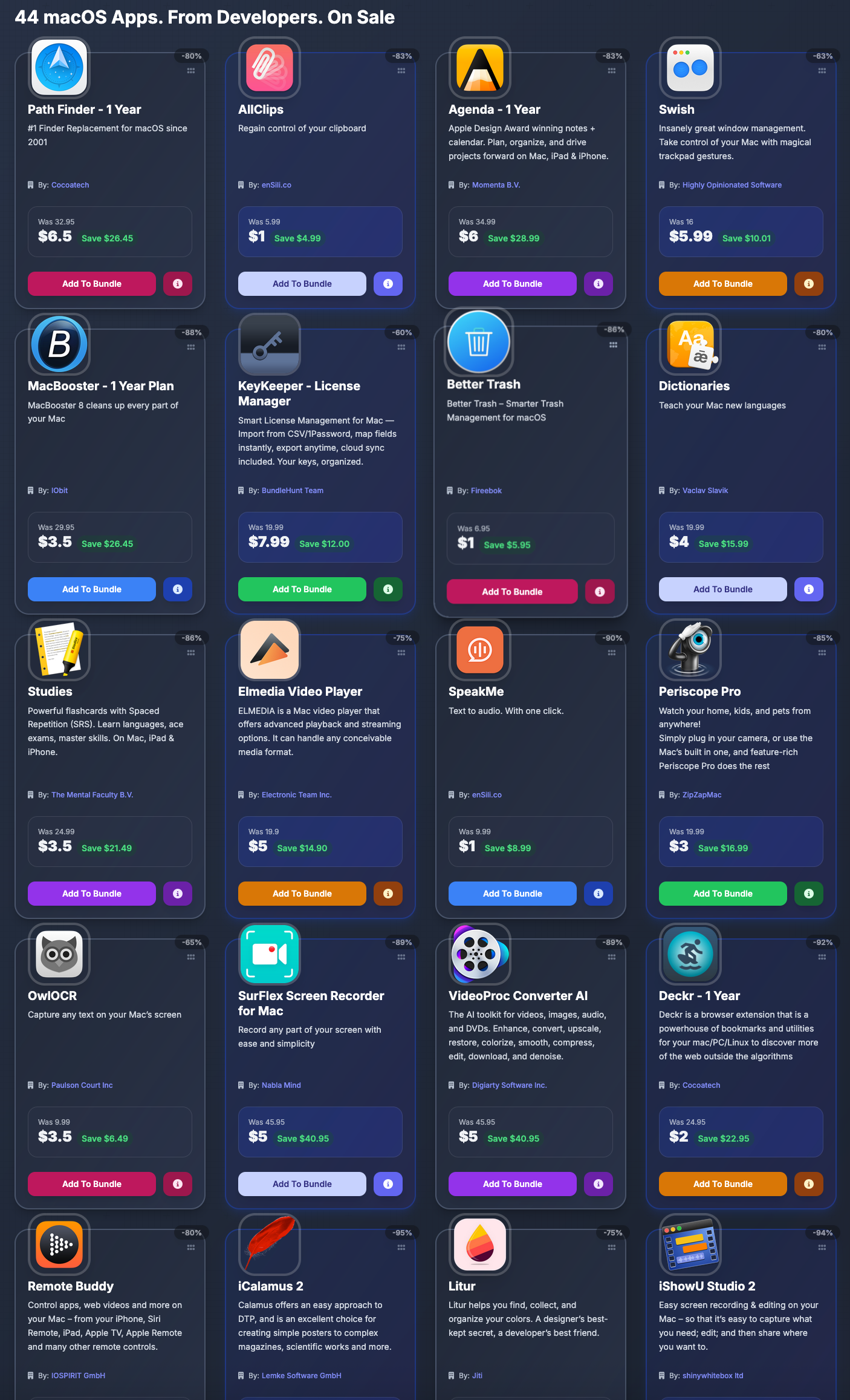 Hưởng ứng phong trào sử dụng ứng dụng bản quyền, mình vừa nhận được mail “chào hàng” 44 phần mềm phổ biến trên macOS với giá cực tốt. Anh em có thể lựa những phầm mềm cần thiết để mua (đa số giá chỉ bằng 1 tô phở thôi)