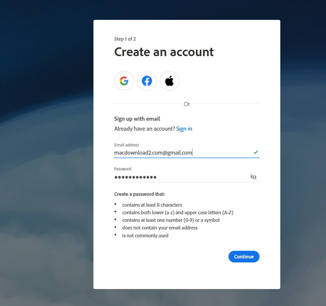 Lưu ý: Acc nên có Location là US. Để chắc ăn thì anh em vào Adobe.com rồi đăng ký một tài khoản mới, trong lúc đăng ký để ý những lưu ý sau: [Location và Date of birthday]