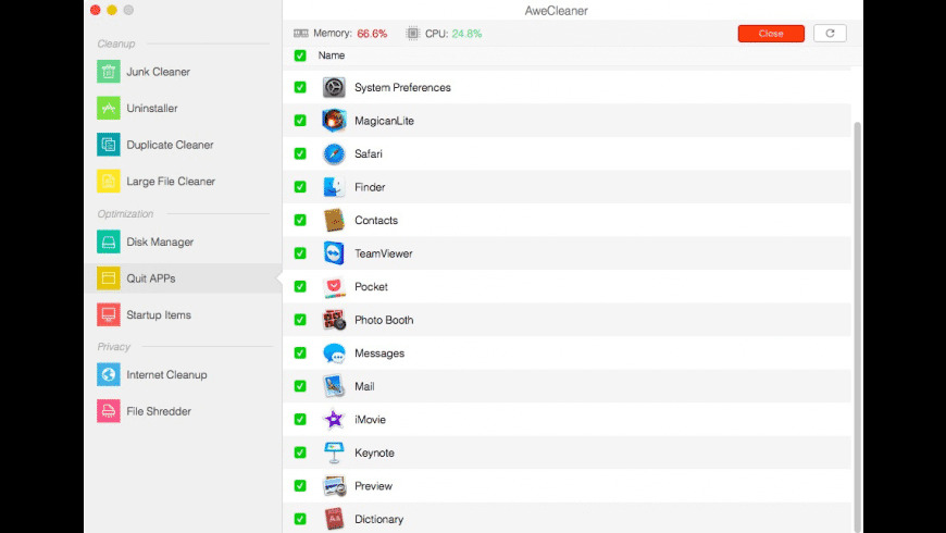 AweCleaner là trình dọn dẹp máy Mac tất cả trong một, nó không chỉ có thể giúp người dùng Mac dễ dàng và nhanh chóng dọn sạch tất cả các tệp rác mà còn có thể gỡ cài đặt các ứng dụng, tìm / xóa các tệp lớn, tìm / xóa các tệp trùng lặp, giải phóng bộ nhớ, quản lý đĩa cứng, v.v … Phần mềm dọn dẹp toàn diện này cũng có thể giúp dọn dẹp dấu vết internet bằng cách băm nhỏ dữ liệu vĩnh viễn. Giao diện đơn giản, dễ sử dụng
