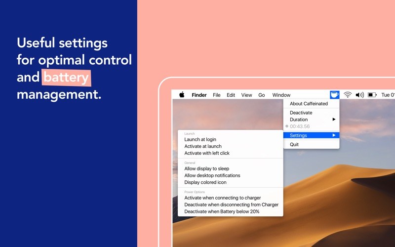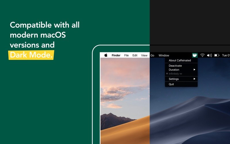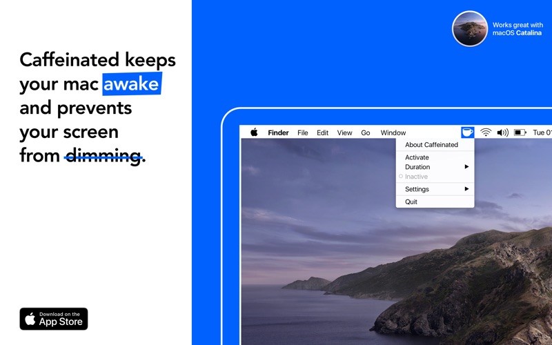 Caffeinated– đúng với cái tên của nó, phần mềm này sẽ ngăn không cho thiết bị Mac của bạn Sleep, Tối màn hình, hay chạy Screen Saver