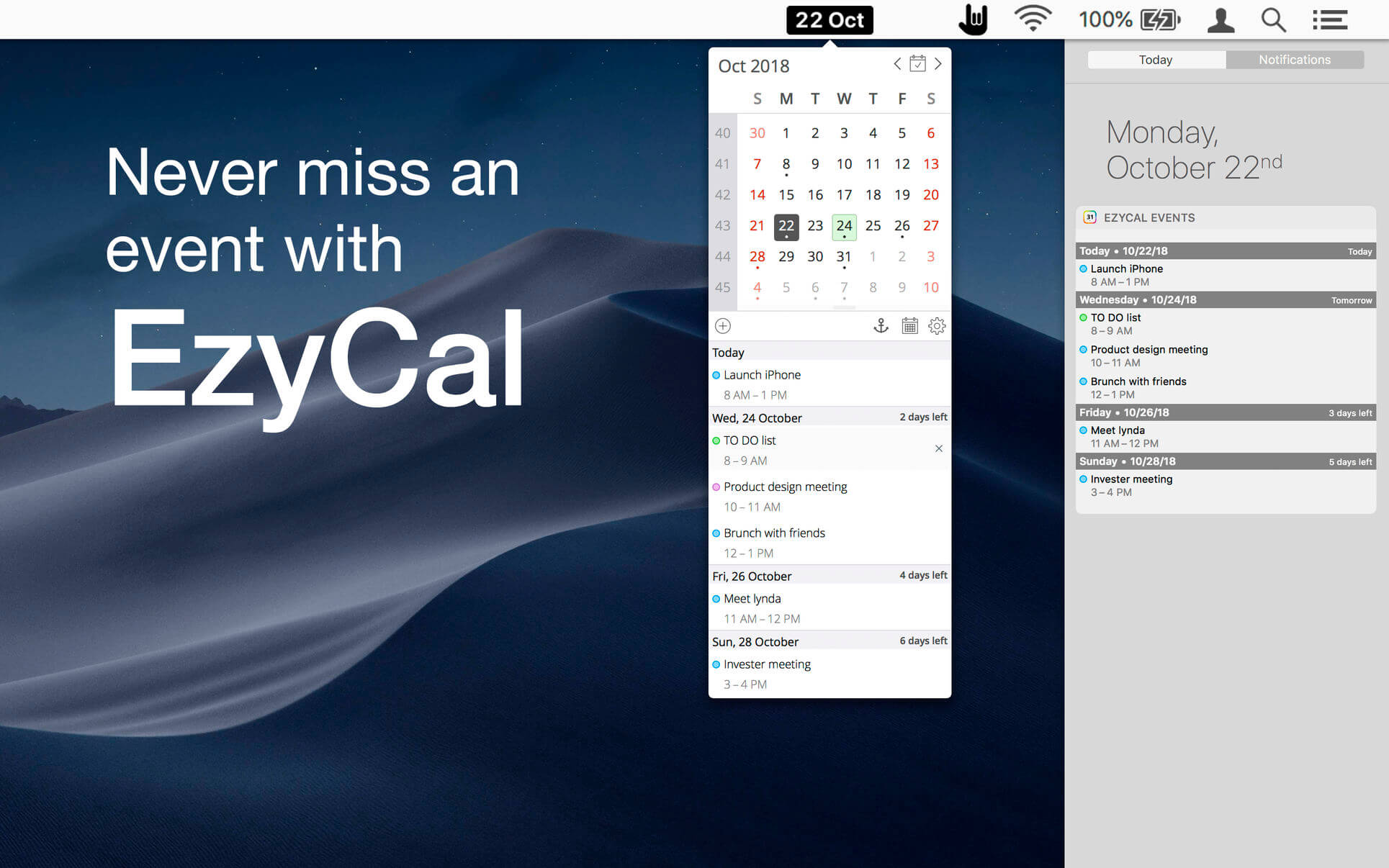 EzyCal app giúp bạn có một “chiếc” lịch để xem ngày tháng, xem các sự kiện, hoặc lên lịch làm việc, nhắc nhở các sự kiện ngay trên Meubar