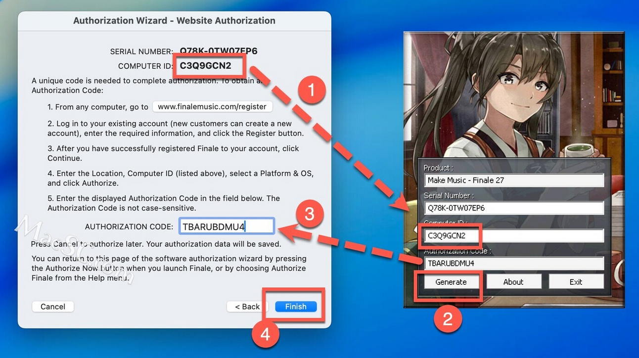 6. Lấy seri nhập vào bước 4. Mấy thông tin khác điền đại cũng được. Sau khi nhấn Next có Computer ID thì nhập vào ô Keygen nhấn Generate. Nhập ngược vào Ô Authorization code là xong