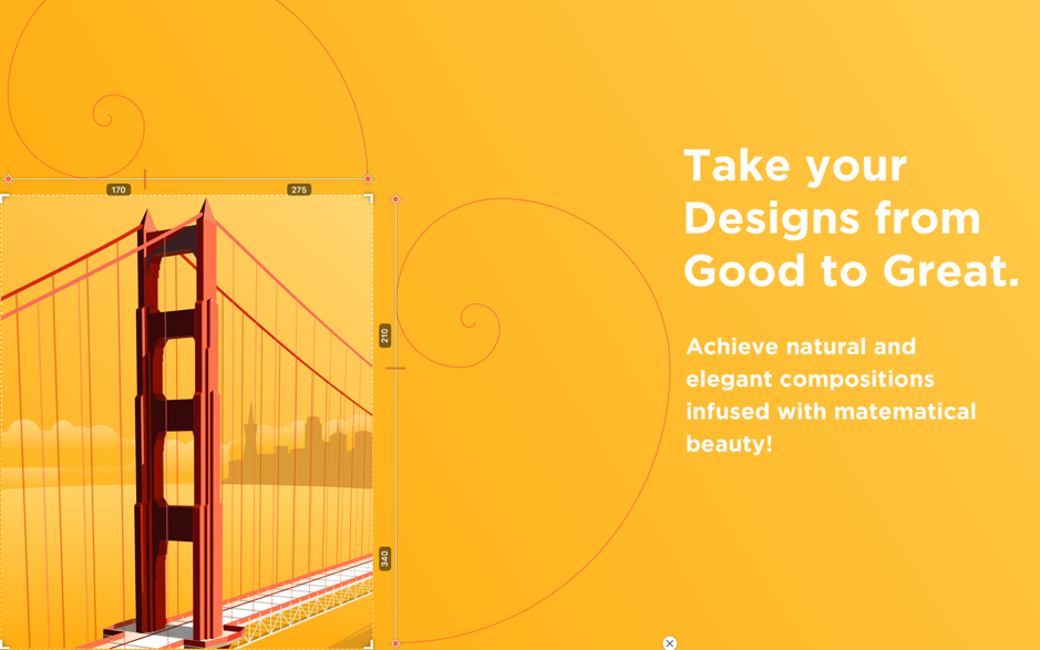 Goldie giúp bạn dễ dàng hình dung hoặc tính toán tỷ lệ vàng và nhiều tỷ lệ khác ngay trên màn hình của bạn. Hỗ trợ rất nhiều trong công việc thiết kế, giúp bạn trở thành một nhà thiết kế chuyên nghiệp.
