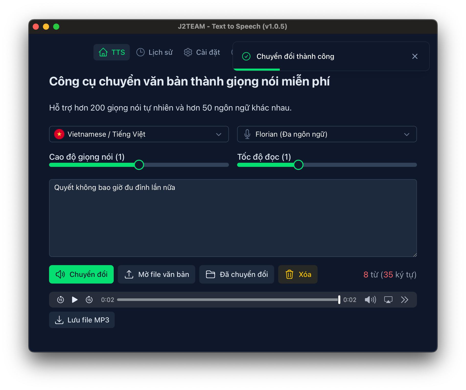 Phần mềm chuyển văn bản thành giọng nói rất hay của bạn Mạnh Tuấn bên J2team