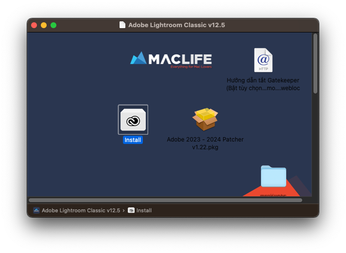[Nếu không được thì chuột phải vào file Install> chọn Show package contents>vô Content>macOS> chạy file Install để cài]