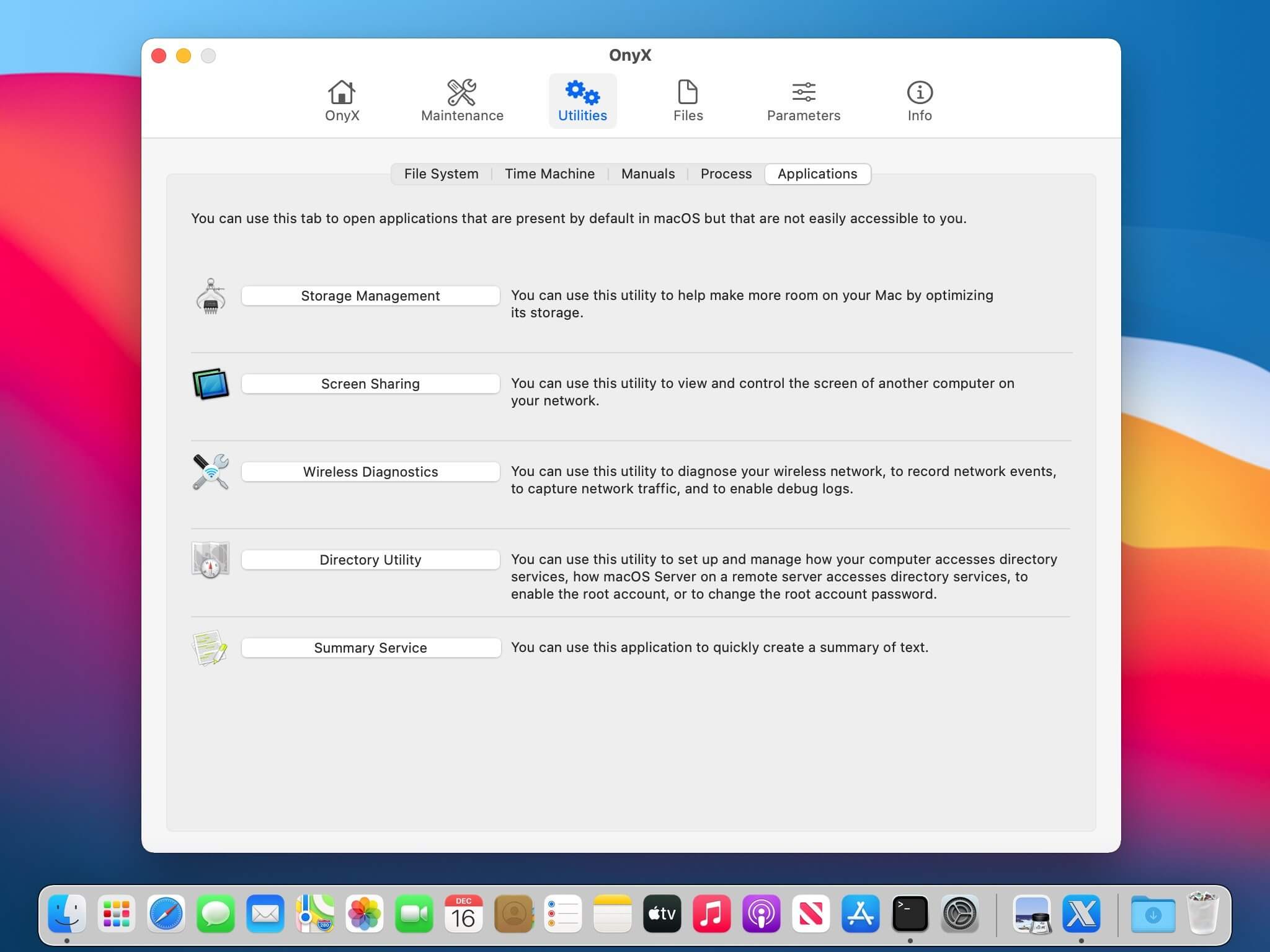 OnyX là tiện ích đa chức năng giúp bạn có thể kiểm tra ổ đĩa khởi động, kiểm tra cấu trúc file hệ thống, chạy các tác vụ bảo trì và dọn dẹp hệ thống. Công cụ hữu ích khi máy bạn gặp sự cố, Onyx giúp bạn kiểm tra và khắc phục sự cố kịp thời