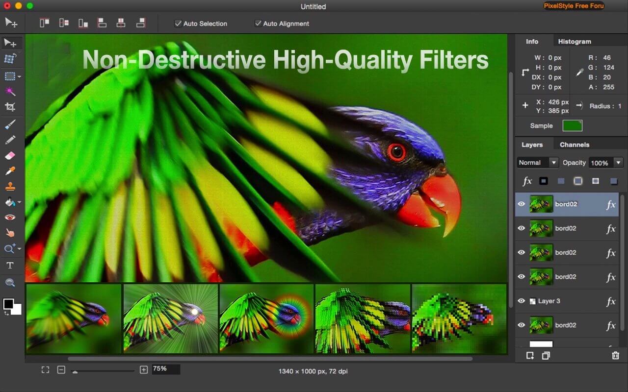 Giao diện và các phím tắt của PixelStyle Photo Editor cũng khá tương đồng với Photoshop, nên bạn nào đã biết sơ về Photoshop thì có thể sử dụng PixelStyle Photo Editor rất dễ dàng.