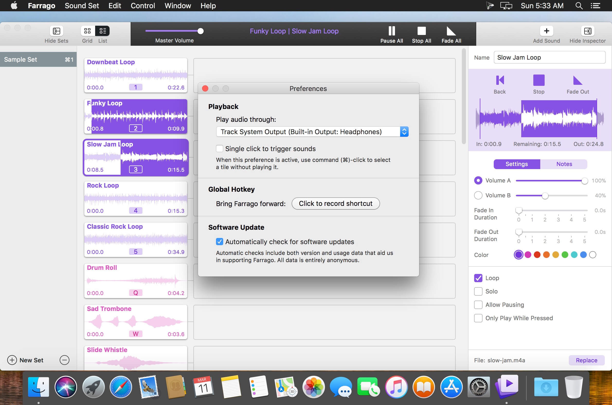 Farrago cung cấp cho bạn cách tốt nhất để quản lý, phát các file âm thanh, hiệu ứng âm thanh và clip nhạc trên máy Mac của bạn.