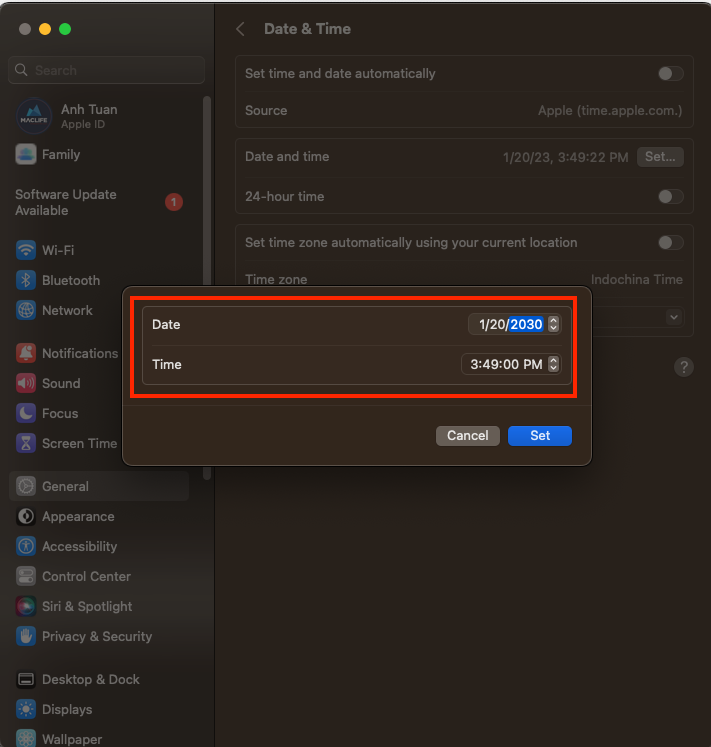 1. Cực quan trọng: Chỉnh ngày giờ về càng xa càng tốt, ví dụ năm 2030