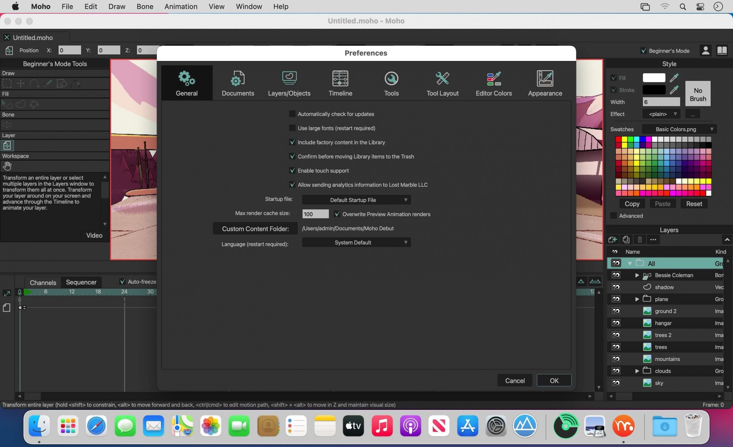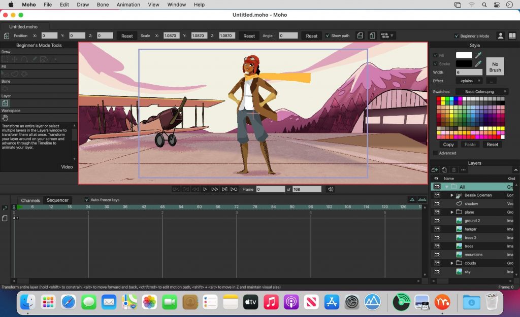 Moho now has bitmap drawing capabilities! Texturize your characters and objects right in Moho using one of Moho’s default brushes or create a custom brush using the new Brush Manager if you’re a Moho Pro user.