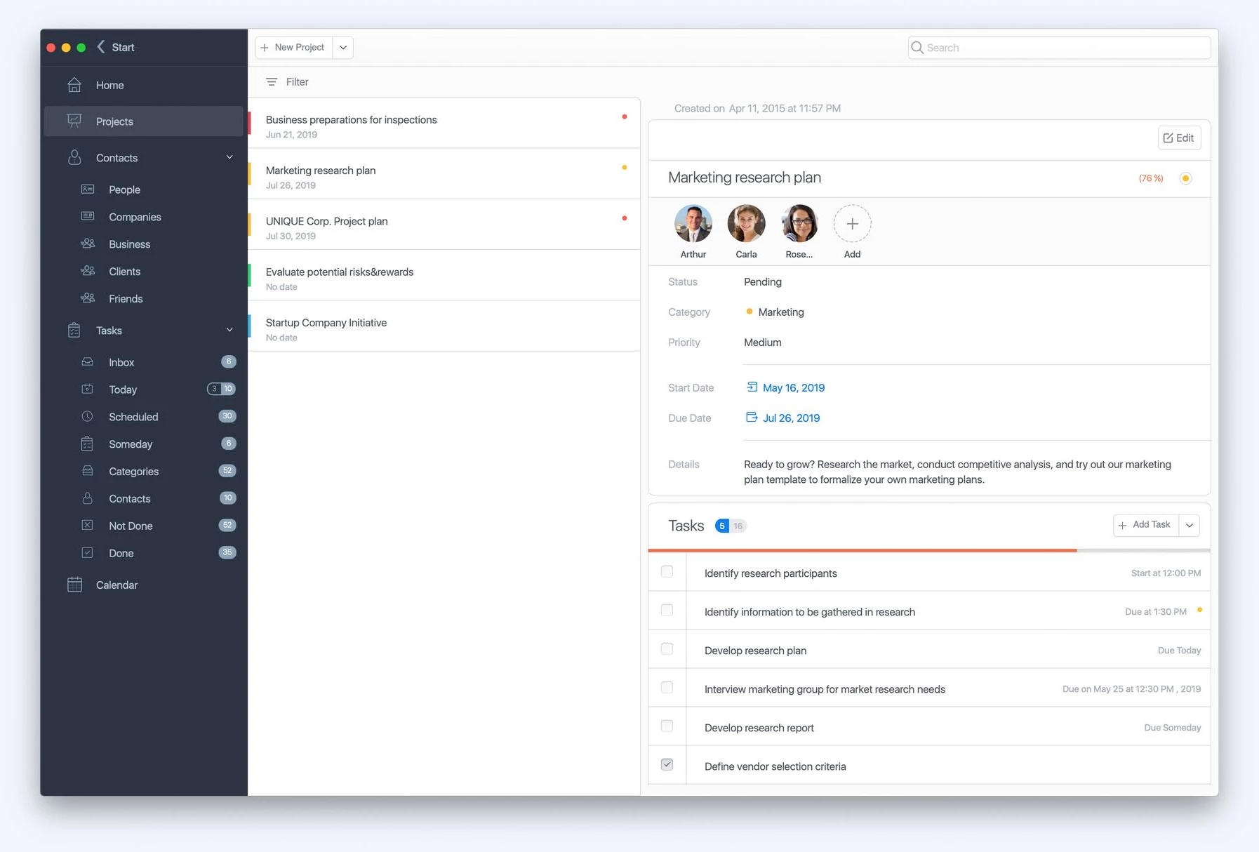 Task Office làm cho kế hoạch của bạn rõ ràng và có hướng đi cụ thể hơn. Quản lý cả các dự án đơn giản và phức tạp, danh sách thực hiện mà không gặp bất kỳ khó khăn nào và tập trung vào kết quả cuối cùng. Quản lý danh bạ và các mối quan hệ của bạn, sắp xếp thời gian của bạn sao cho hiệu quả nhất.