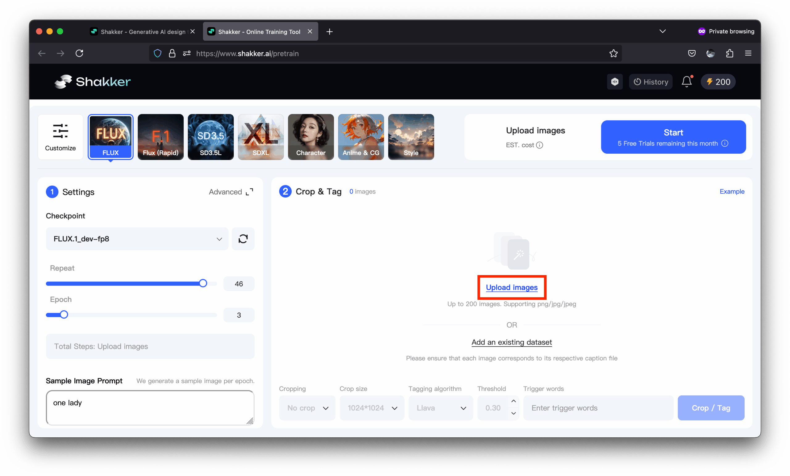 Sau khi đã có đủ khoảng 5 ảnh chứa khuôn mặt của các bạn thì nhấn vào Train a Lora