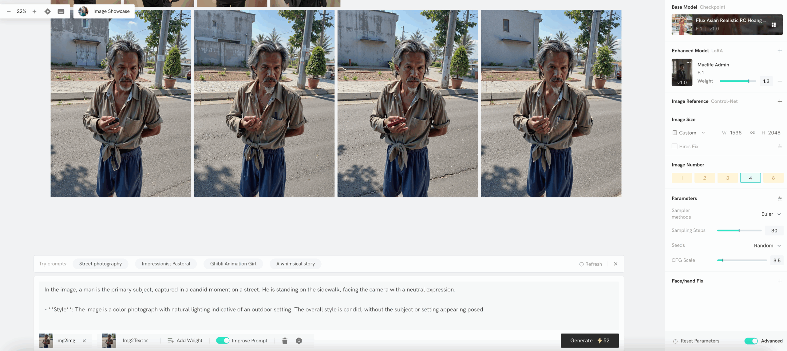Sample image Promt: Nếu là đàn ông để đại One Man cũng được, hoặc anh em có thể mô tả chi tiết hơn như: one man, 40 year old, màu áo, màu tóc….